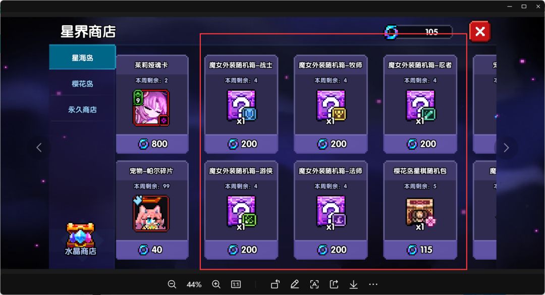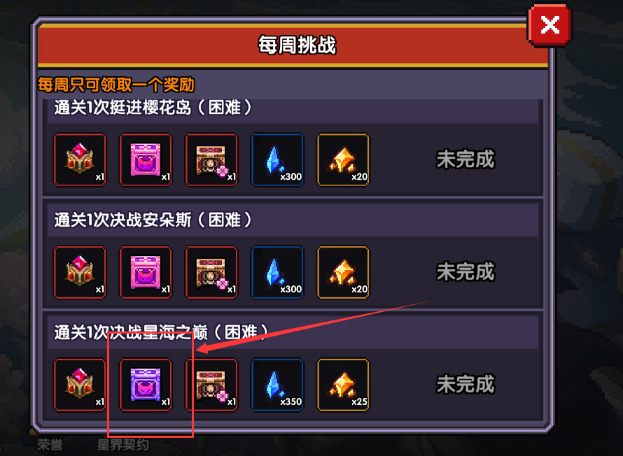 升级材料——魔女/星海之尘。通过分解魔女外装获取