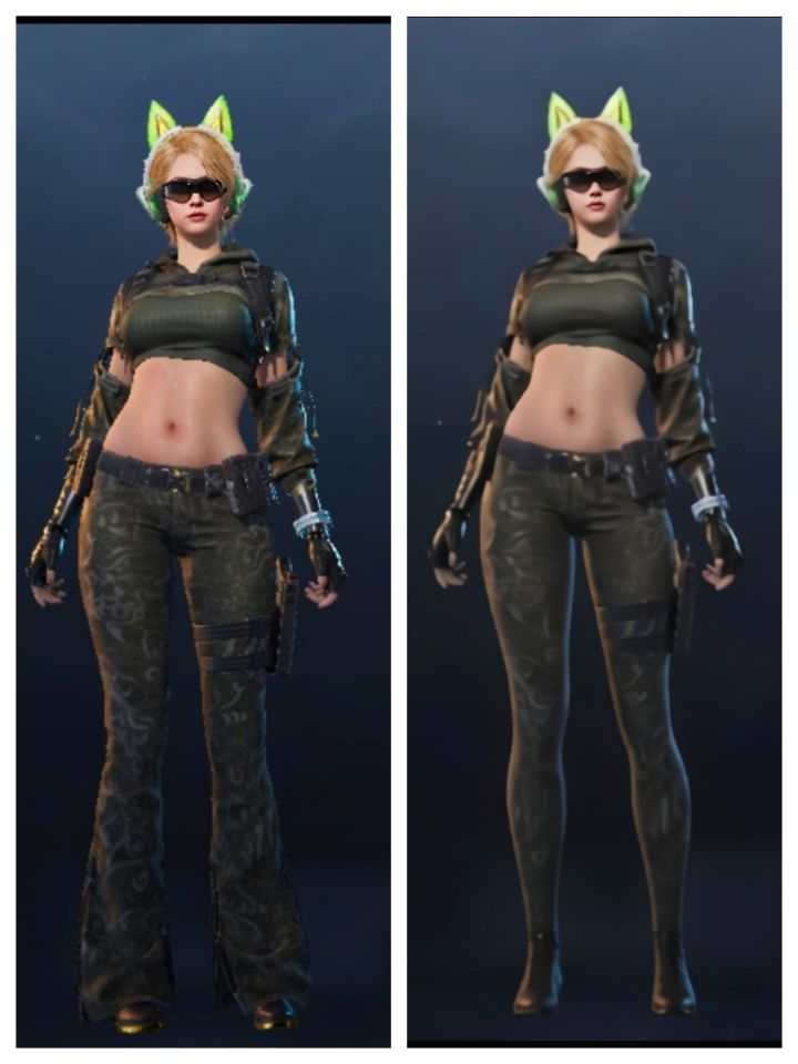 强烈建议把黑寡妇的裤子改一下,左边原图,右边我改了一下。喇叭裤的设计太不符合黑寡妇角色设定,而且看上去太邋遢。右图比较干净利索。也好看。
