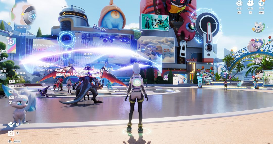 大世界探索除了能抓宠之外,还有开宝箱、打副本和解谜小游戏等多种玩法,基本都是跟宠物属性和技能绑定的,比如有时候需要跟宠物联结后爬墙取宝箱,或者起飞滑翔过副本等等。但因为二测的BUG比较多加上新手引导比较少,所以在开某些宝箱和打副本的时候会有点懵逼,不知道要怎么操作,希望下次能多点引导吧。