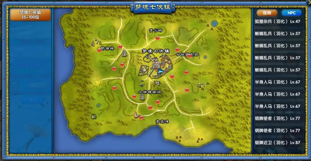 羽化后进入的梦境七侠镇为专属地图,怪物经验大幅提升,且PK不红名!地图内怪物等级为47-87级,是“强天位”侠士练级切磋的宝地。