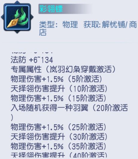 专属灵武——彩翎镖。记住,专属的永远优于通用。