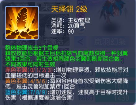 3.蓝色:提高速度,且高于目标时,根据速度差提升伤害。(速度↗伤害基于目标与自身的速度差↗,觉醒仙道还附加一定的“速度修正”)可见,岚羽幻枭的三种翅膀效果分别主要对三个不同角度的能力进行强化。