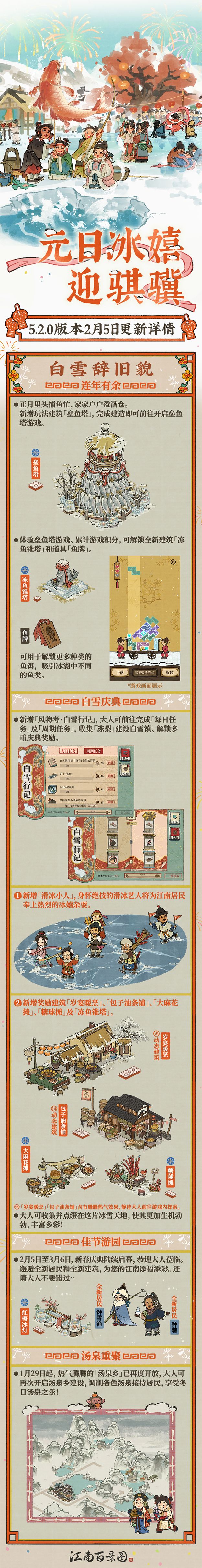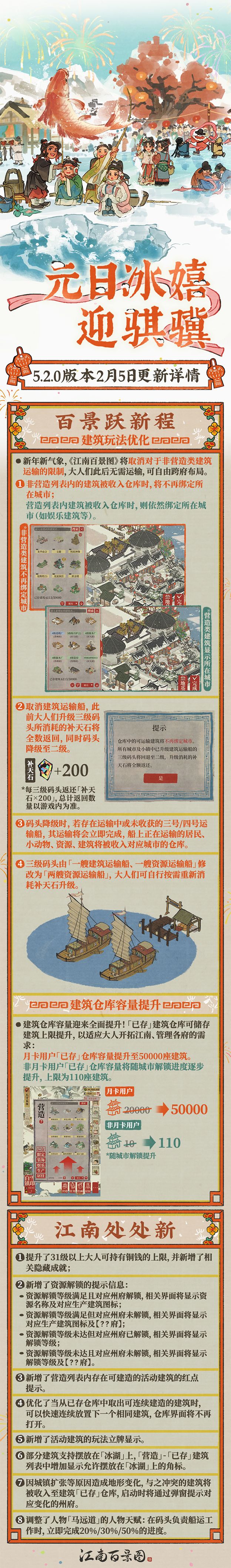「应天府扩地」「白雪镇焕新」「建筑玩法优化」等《江南百景图》马年新春全新版本更新详情,欢迎知府大人滑动至下方长图查看。