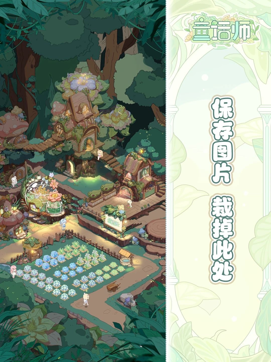保存图片 -> 相册编辑 -> 裁剪掉右侧边框,就能把整个童话世界装进手机里啦~