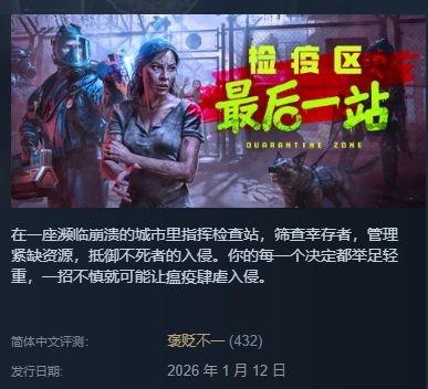 这会儿到了正式版,中文名改叫《检疫区:最后一站》好吧,反正游戏还是那个游戏,玩家还是那帮体验过demo后非常喜欢的玩家,但是评价完全不如预期。
