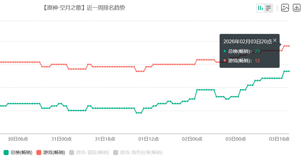 根据第三方平台显示的相关数据内容,游戏目前的流水表现为总榜畅销榜排名为第23名次,游戏畅销榜排名为第12名次,未能超过王者