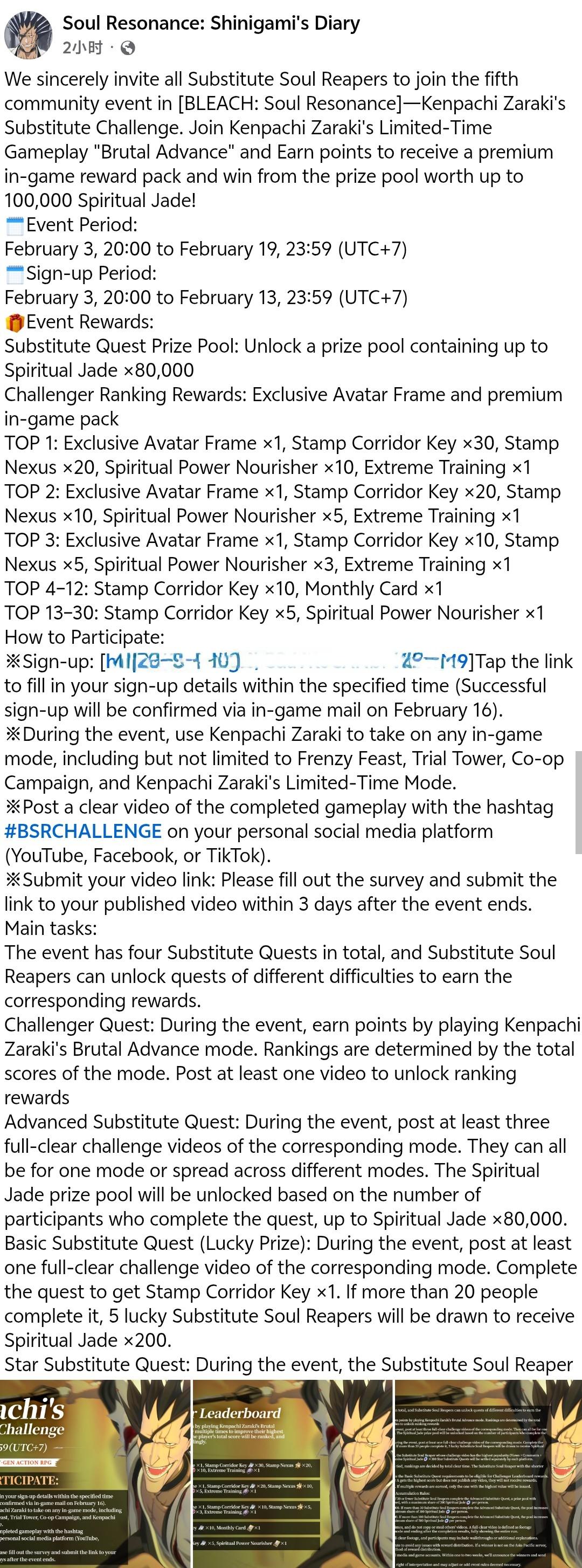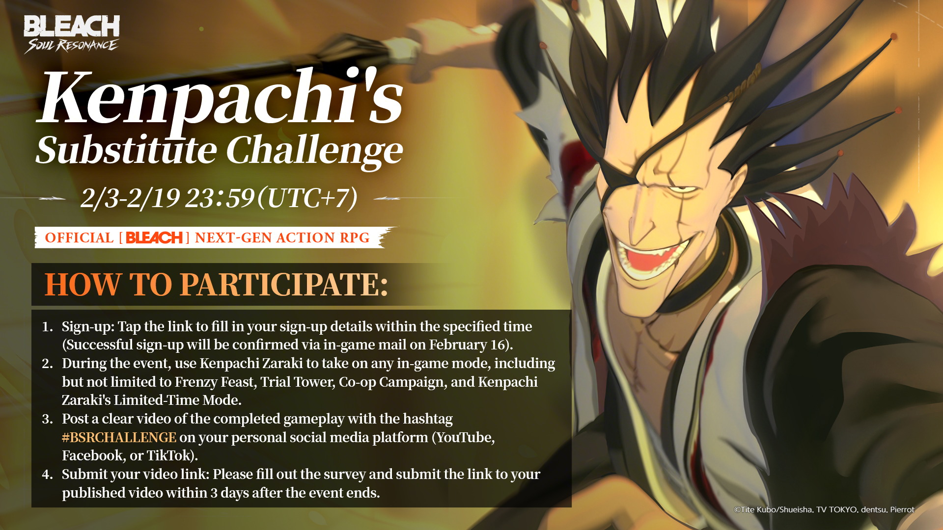 我们诚挚邀请所有代理死神,参与《BLEACH:魂魄共鸣》第五次社区活动——更木剑八代理挑战。
