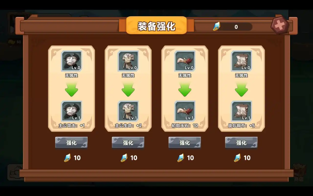 除了局内构筑,游戏也提供了一定程度的局外成长。玩家可以在局外强化主公的各种属性、穿戴装备等。让主公在对局时有更高的容错率,在某些时候海可以通过“卖血”取胜。
