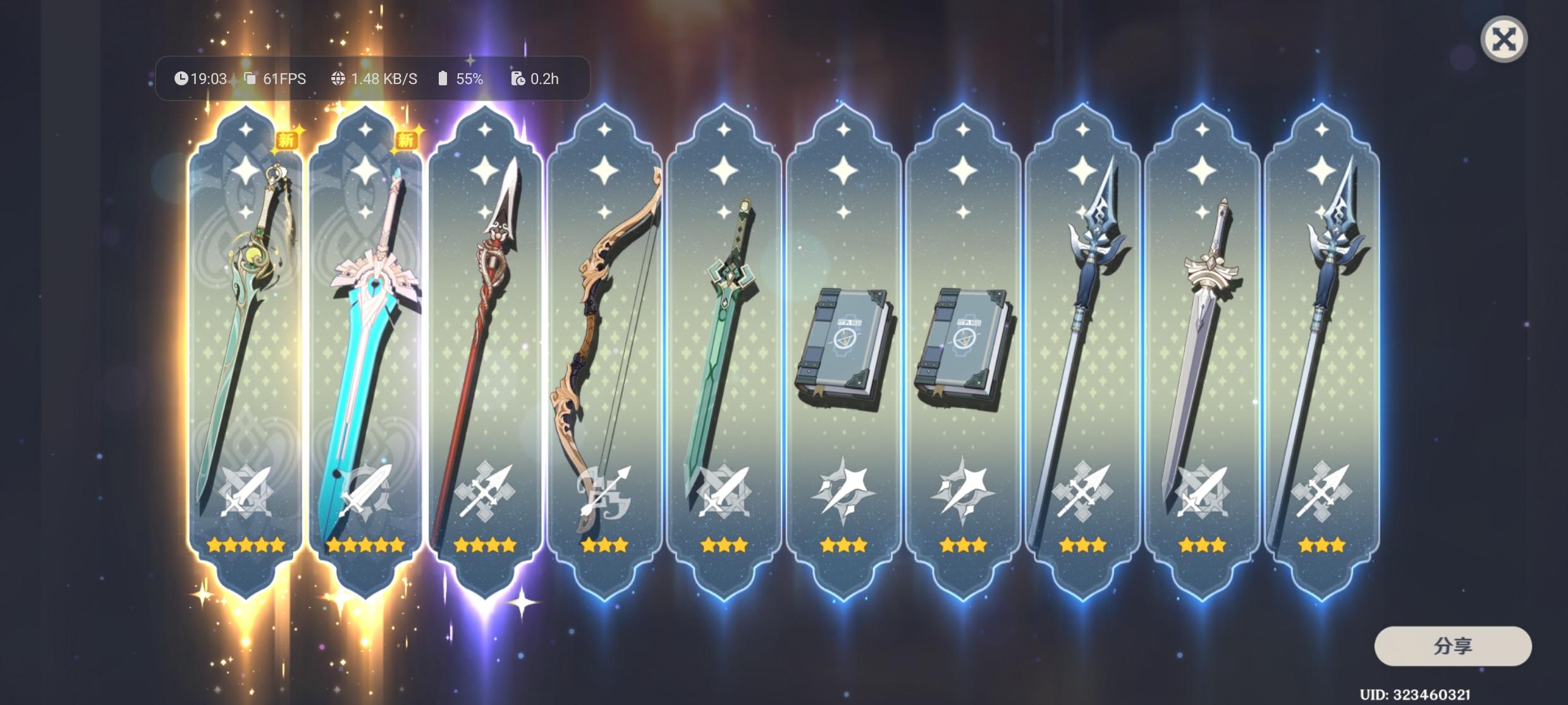武器吃满了还好没歪,圣遗物也是强化嘎嘎出双爆,一天就毕业了