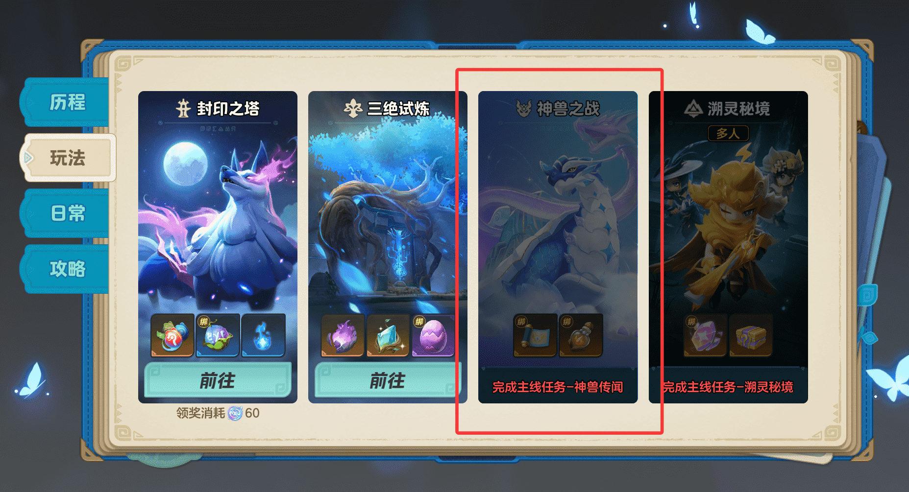 神兽挑战需要角色到达60级且完成主线-神兽传闻才会开放;