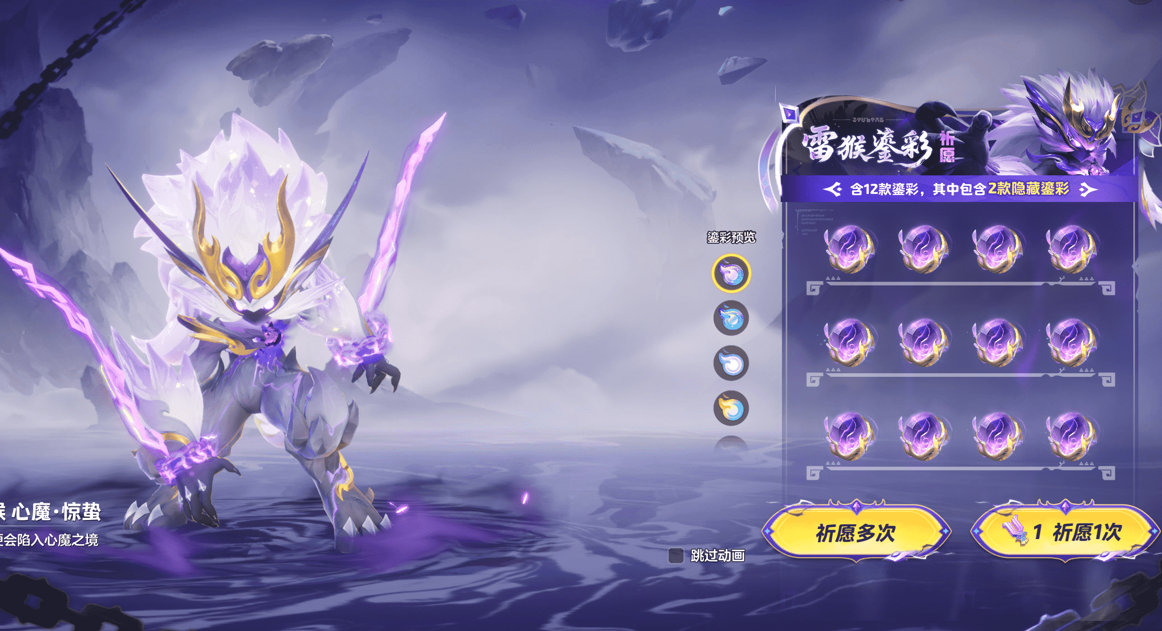 首先,这个心魔鎏彩跟以往商城中的不同,包含两个隐藏款,最多只需要抽12次就能拉满保底。