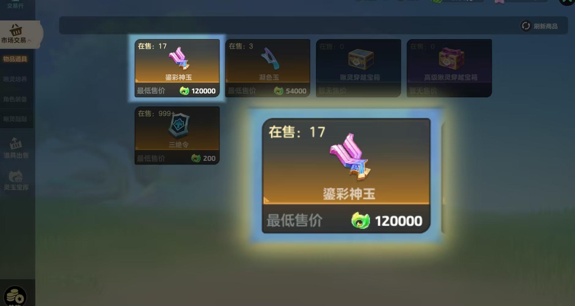 三是在交易行直接通过通灵宝玉购买其它人上架的鎏彩神玉;