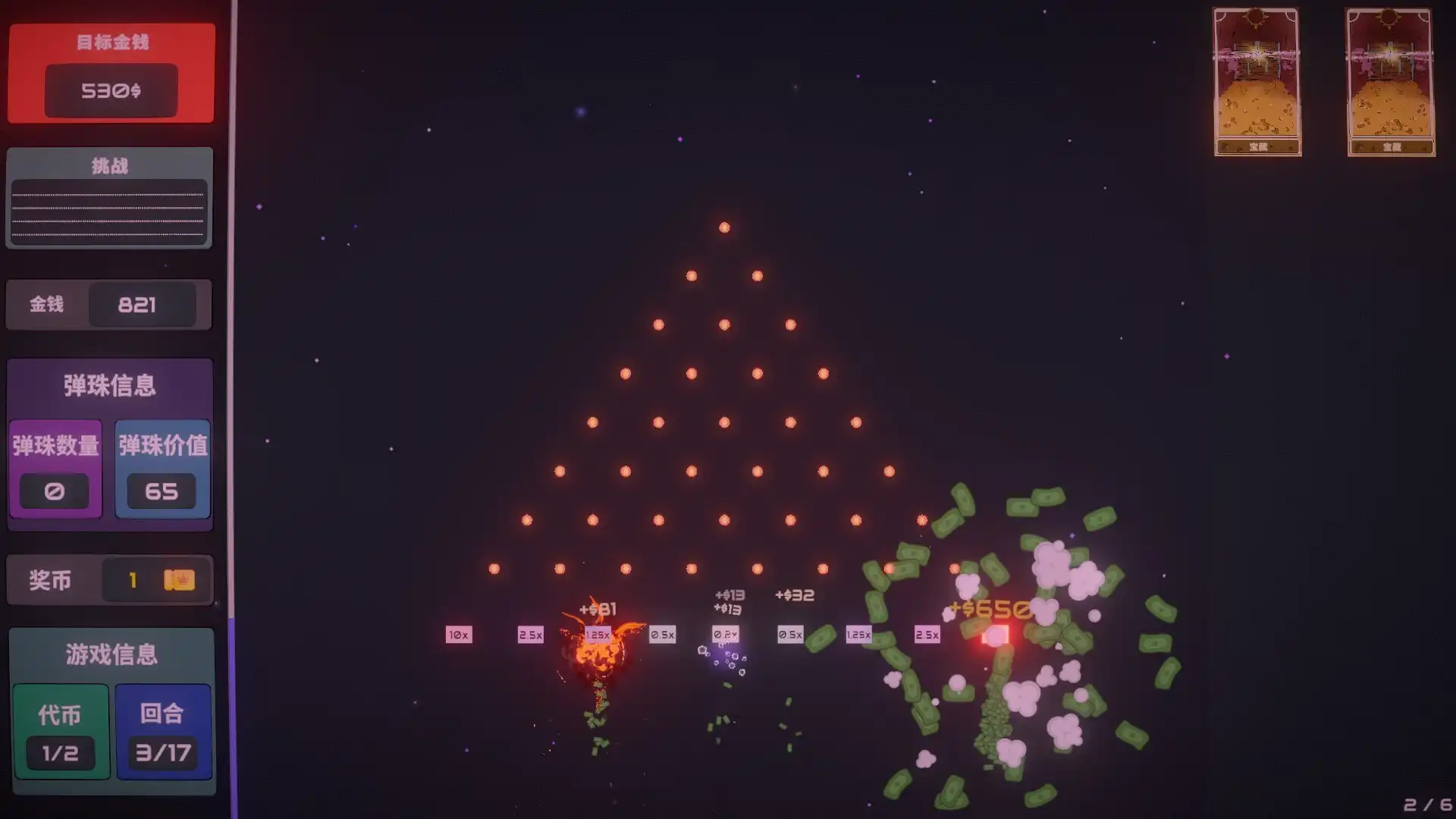 游戏中玩家通过构建你的牌组、购买特别弹珠,叠加增益,为通关创造最大可能。