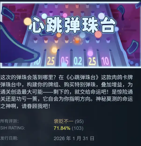 19元!弹珠与卡牌融合的全新肉鸽游戏《心跳弹珠台》现已发售