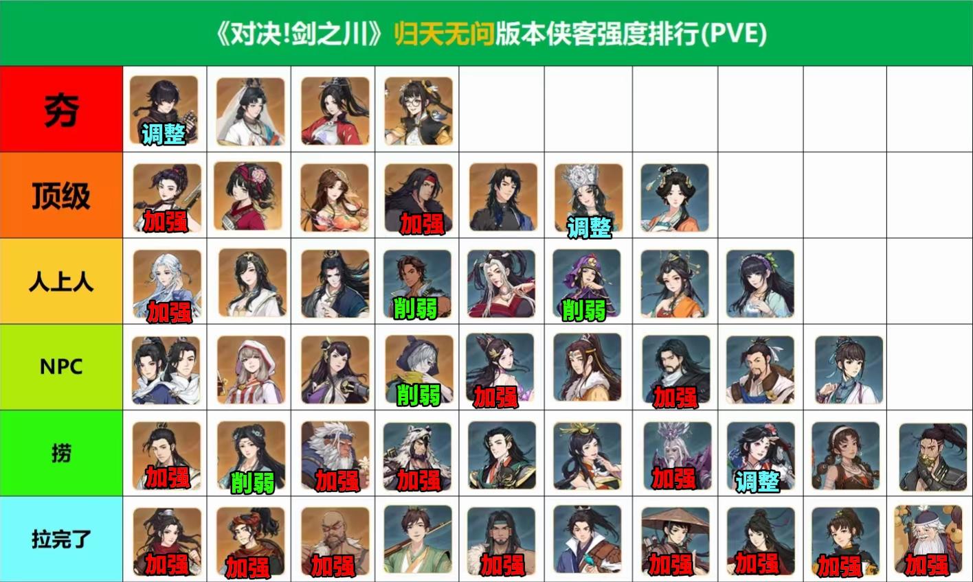 只有墨七惨遭波及,因为削弱了风卷残云,这是墨七常用的策略卡。不过问题不大,换个策略卡用就得了。原本还想做个2月份强度榜,结果大量心法增强,角色也加强,没加强的角色因为心法的缘故也有提升,看来排行榜要观望一段时间了。