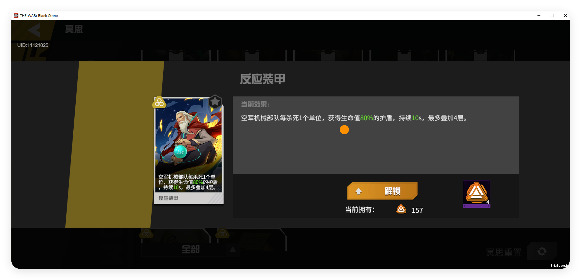 最为幽默的冥思,从来没见发挥过作用,隔壁铁蒺藜好歹能吃口+油耗和角炮。而这个玩也纯路边,还只算半条,应用面窄得不能再窄了,而且随便来个部队就能把这卡无效掉。干脆删了这卡把效果砍一刀丢给黑鹰炮兵算逑,低血单位改成载具,嘎嘎好用。还不浪费代码。