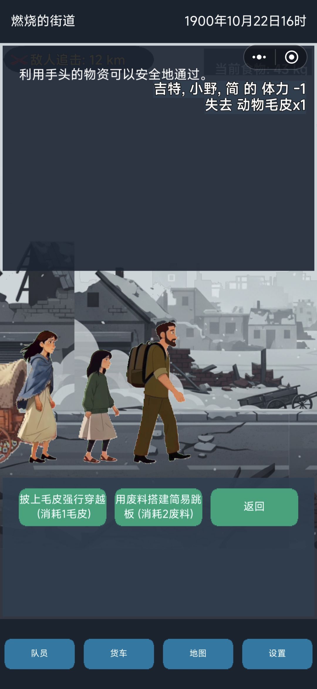 路途中的随机事件也可以sl只要没到下个存档点。以物易物多讨价还价,以少博多可以支撑我们物资丰富