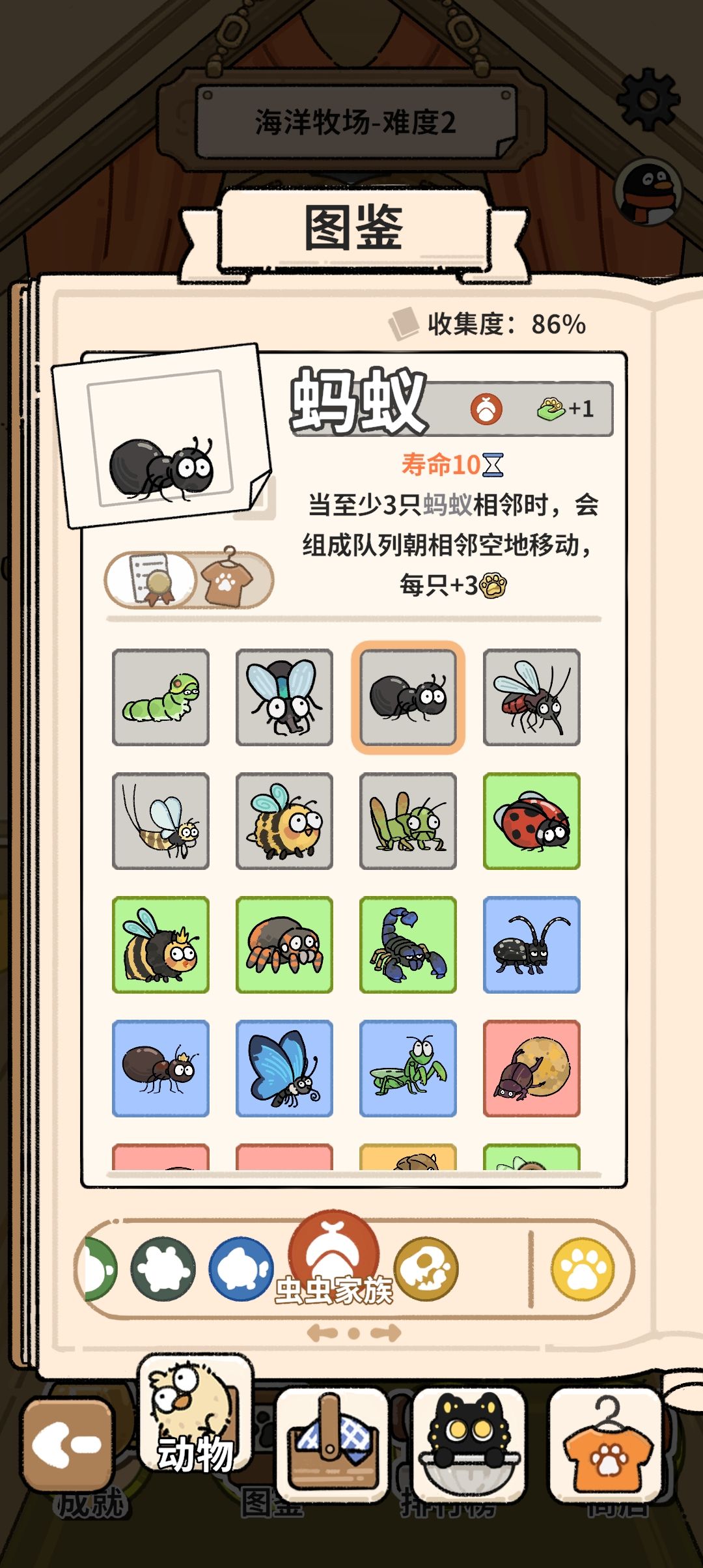 思路:开局用纸箱子刷出虫虫家族的蚁后和健身环。好了,你已经通关了。打到后面如果想打无尽模式,就找,四不像、杰瑞、跳鼠、羊驼。原理是蚁后生出的蚂蚁会自动移除,然后四不像的效果是每移除一只动物就把它一半的钱分给在场的其他动物。杰瑞的效果是视场上所有队伍为相邻。跳鼠的效果是跳到别的动物身上获得1~3倍的钱。羊驼的效果是使相邻动物获得额外的钱增加一倍。还可以找羊驼帽和跳出尾巴两个道具。到后期之后可以把蚁后卖掉,主要找跳鼠和羊驼。并且用四不像的效果可以叠加他们身上的钱,一直叠加到上限。#猫神牧场攻略 https://www.taptap.cn/moment/767057883941571434