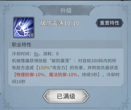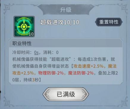 一转天赋需要机器傀儡释放,如果机器傀儡读条等待复活则无法释放