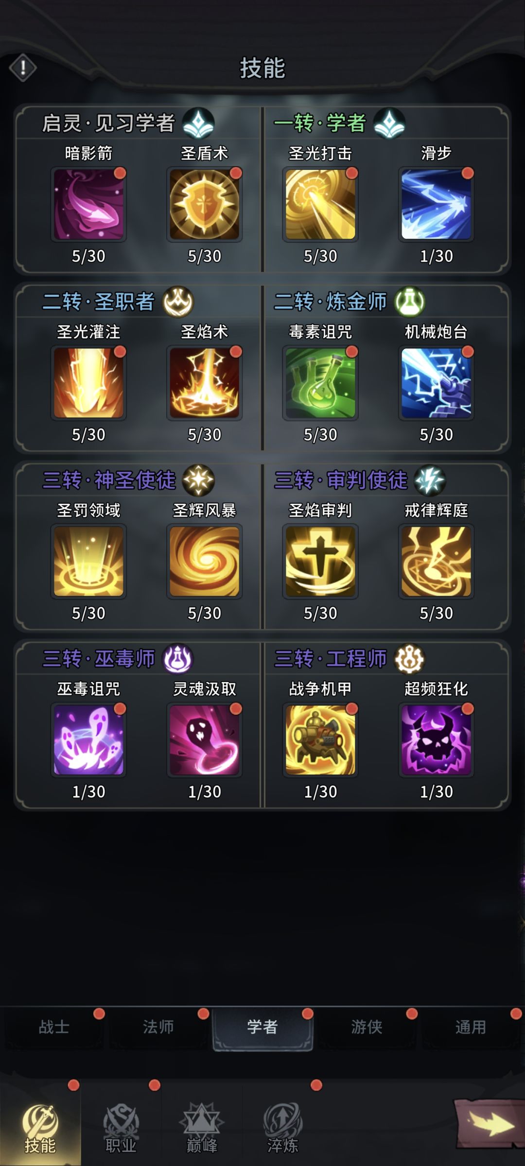 本攻略重点从职业设计特性来解析最新公测版本各职业的特色输出方式及局限。学者的进阶路线为0转(启灵)-1转(学者)-2转(圣职者/炼金师)