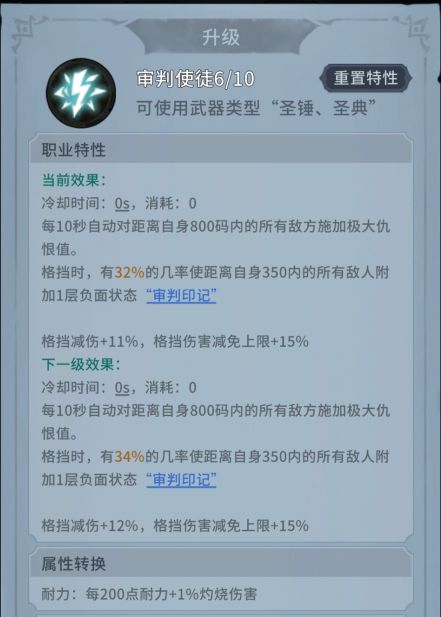 审判印记的效果为:伤害减免-2.5%,可叠加10层