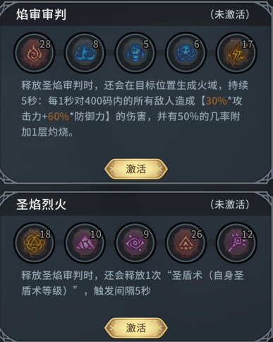 当然,圣焰烈火在激活契约后带来的增益也是极大的,能尽可能保证圣盾术的15%格挡率的加成覆盖率,能激活也是极好的。其余两个优先级要靠后一些。