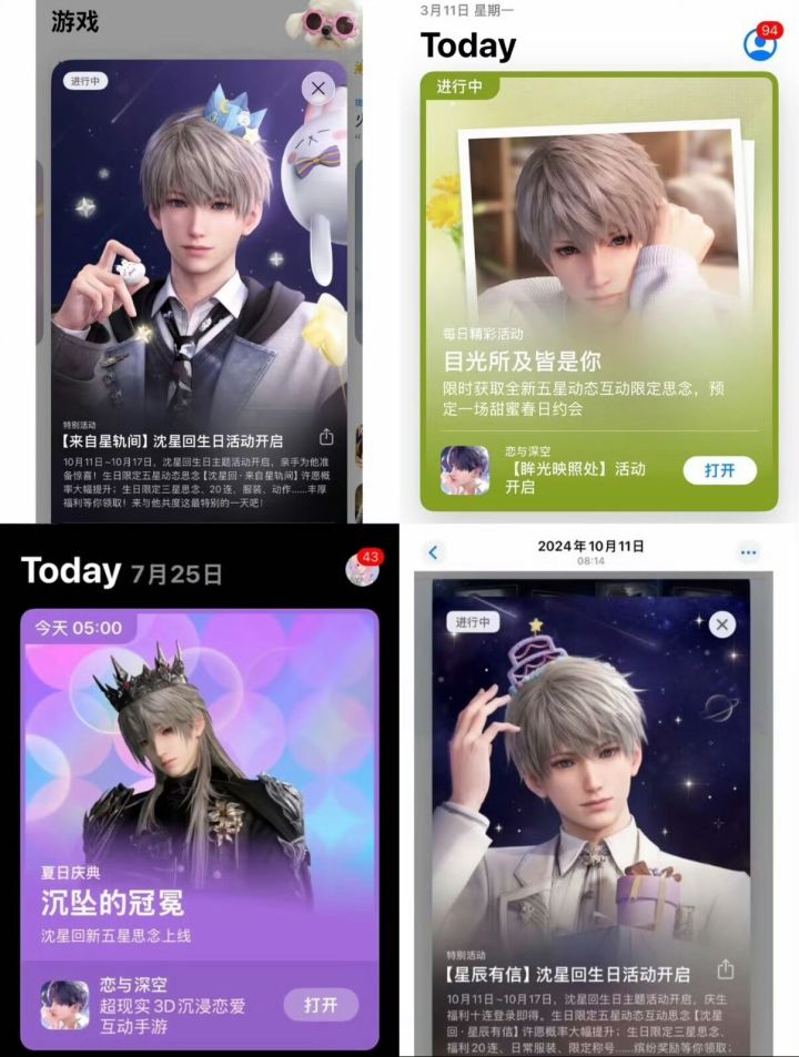 偷跑视觉图中,沈星回以暗黑王权风格亮相,骑乘黑马,整体设计与此前官方公布的“暗蚀国王”设定相呼应,为未公开的情人节主题内容。苹果商店端内版头已提前展示该视觉,进一步证实内容真实性。截至目前,官方尚未公布该内容的具体上线时间与获取方式。