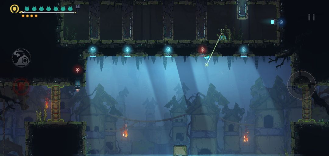 左方画面控制角色移动,右边则可以拉动,并在放开后向前弹射。