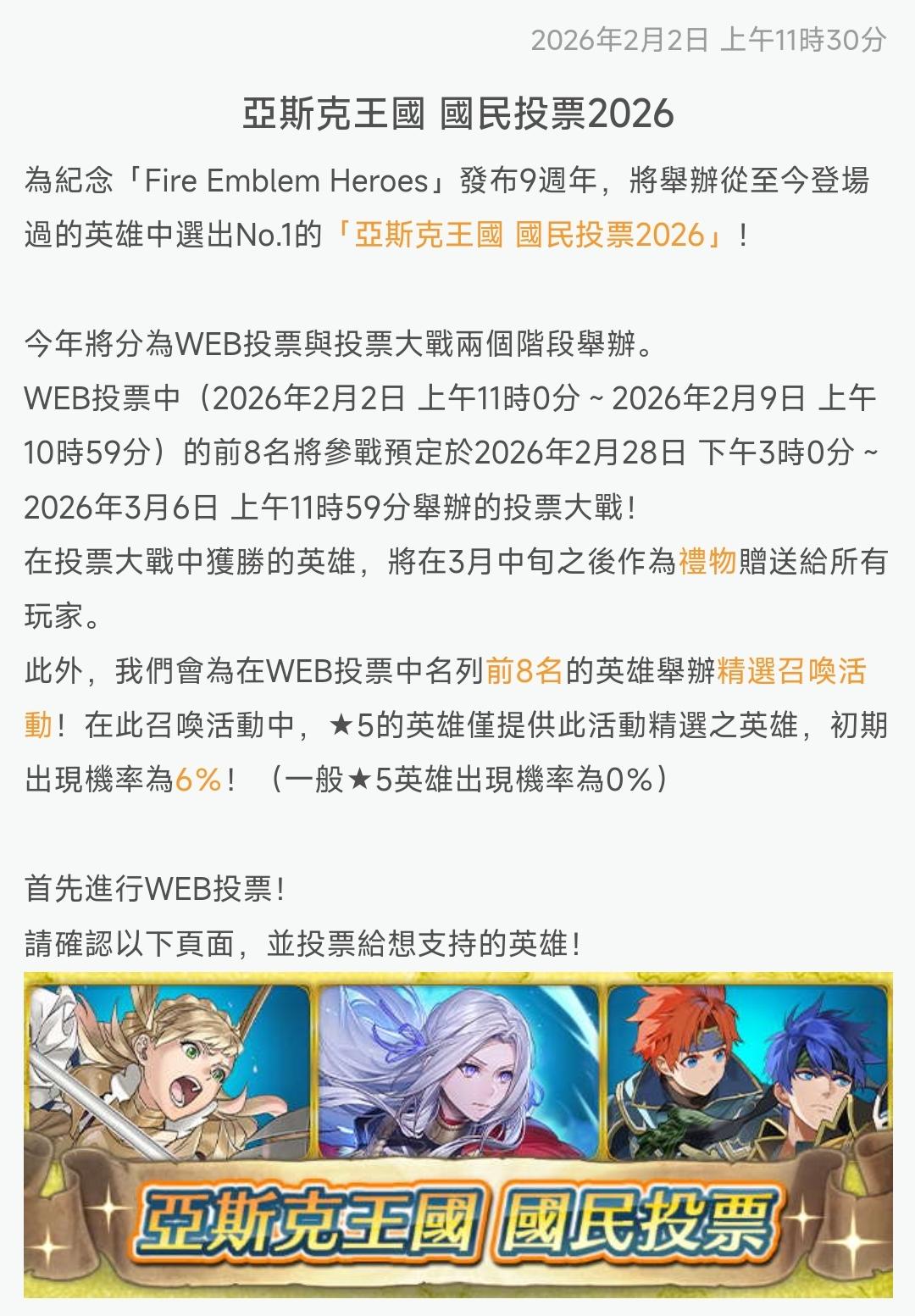 🔥火焰纹章英雄九周年!又推出人气投票活动 玩家热议