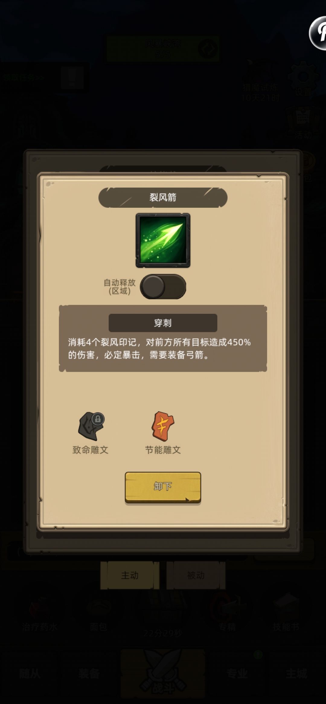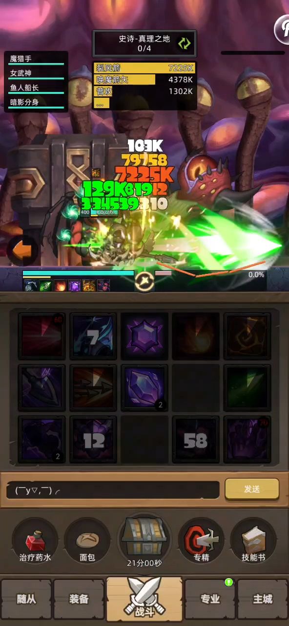 过图快,全自动挂机M14一次过,核心技能“裂风箭”,随从“船长+女武神”