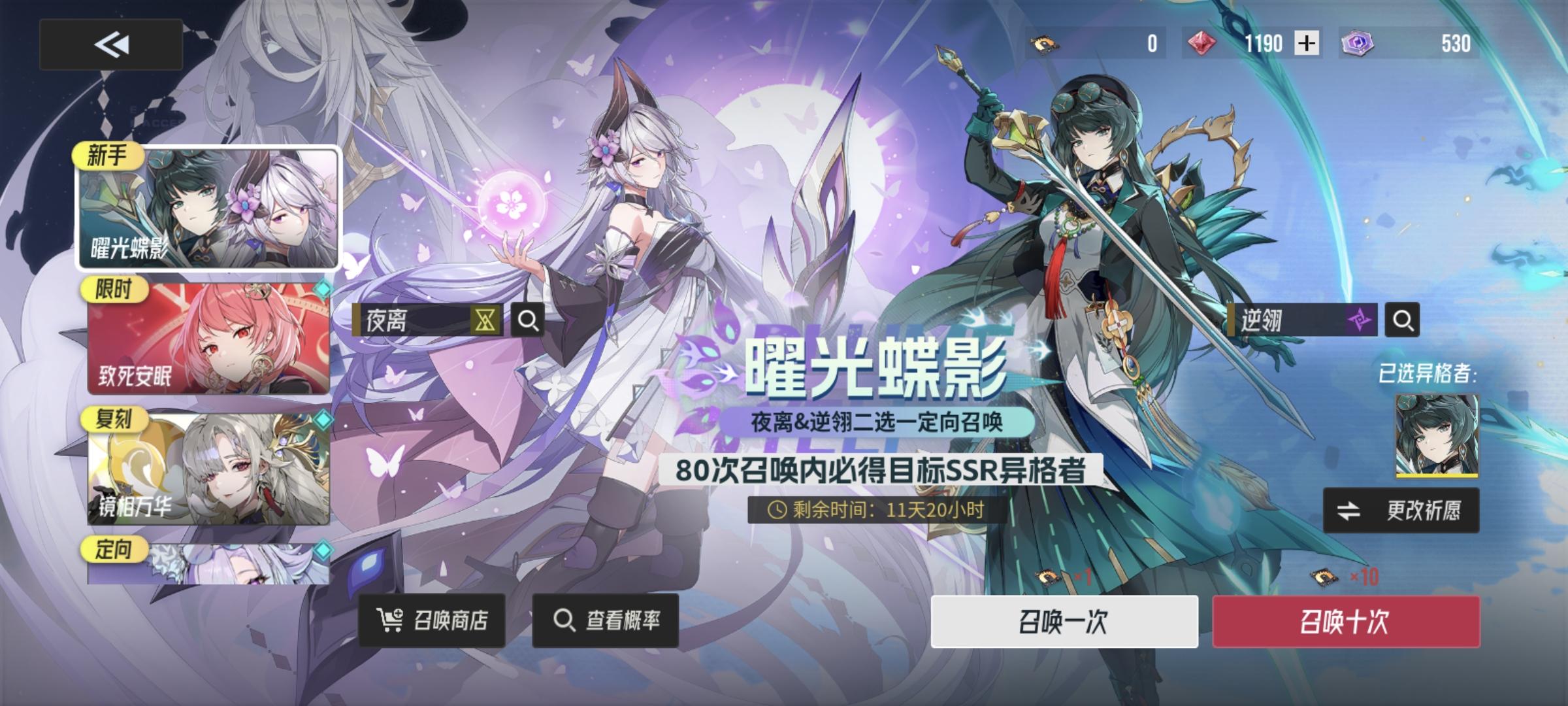 开局会有 「夜离」 和 「逆翎」 两个角色UP池。