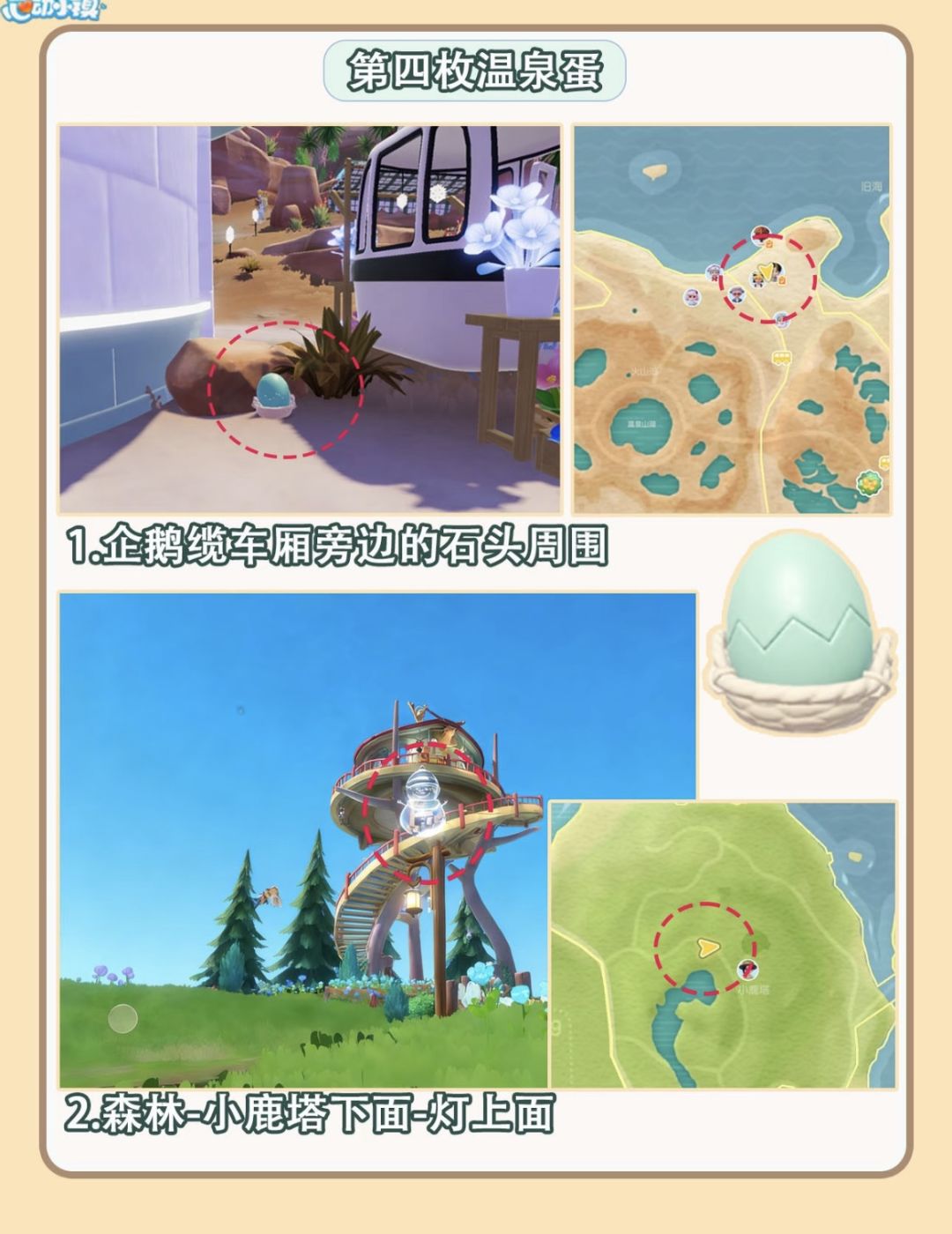 ▫️ 第四枚:企鹅车厢旁石头边 / 森林小鹿塔下的灯上