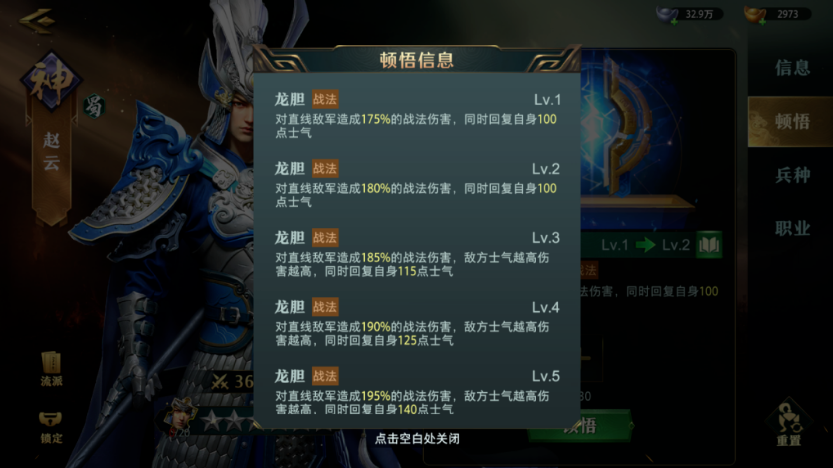 顿悟作用:大幅强化武将专属技能,不同系别(战法/物理/计策)效果各异。
