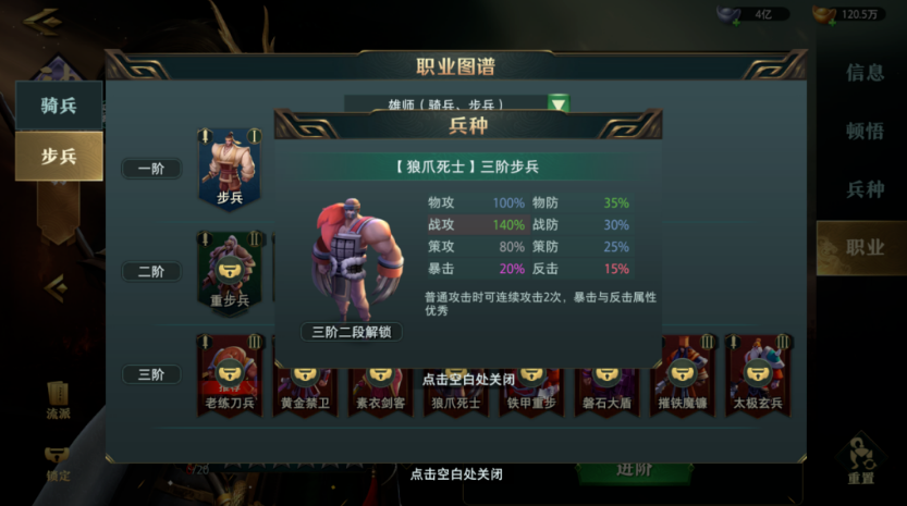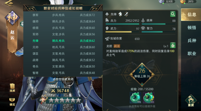职业:每个职业都会有对应的兵力成长,在卧2游戏中职业兵力属性是非常重要的。