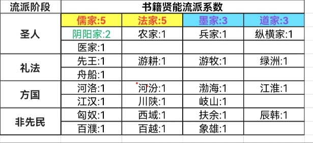 贤能:贤能上限(帝爵12万,王9万,公7万,侯5万,伯3万,子1万)贤能的增长靠"贤人":门客、朝臣(内朝、三公九卿、客卿等),太学(国族阶段,不是指太学生,是指太学官员)、郡府(即郡守,圣人阶段、国族阶段都行)、卿族.游士等贤能可以使用学派推演{学府一学派推演一发起一国老献诗一确认发起#