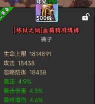 顺便说一下洗练,非大佬也就是没有办法用宠物升星和法宝升星来提升暴击爆伤增伤这些稀有属性的,基本洗练最好是上三条(生命+攻击/法效+对应忽视),下三条(暴击+爆伤+增伤),配合套装效果,基本能达到接近满暴击的状态,这个时候再讨论法宝佩戴