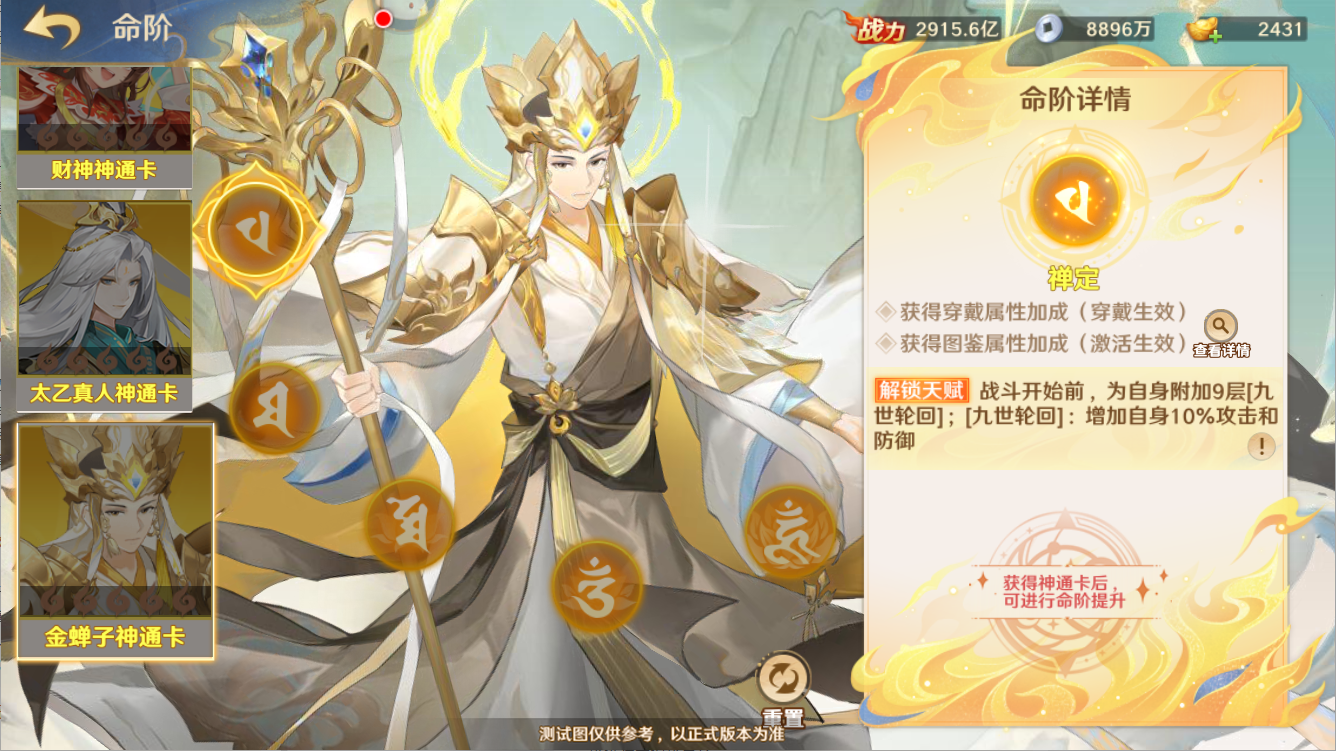 本次开放金将神通卡:全界太乙真人,全界金蝉子