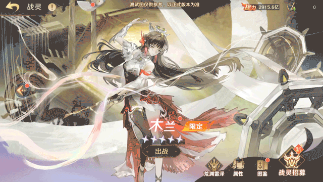 “唧唧复唧唧,木兰当户织”,全新战灵“木兰”上新,可通过限时活动获取。 满星“木兰”出战时,为己方全体神将编织6层[云锦]和4层[华服];[云锦]:每层吸收一定百分比自身受到的直接和间接伤害,吸收量达到一定百分比的自身最大生命值时,减少1层对敌方全体神将造成等量的真实伤害(由敌方全体神将平摊,平摊后的真实伤害最大不超过携带者一定百分比的最大生命值)并增加一定百分比的伤害;[华服]:每轮开始时减少1层使携带者[护盾]值翻倍并增加一定百分比的免伤,每轮最后行动的神将回合结束时减少1层将携带者生命设为一定百分比的值并增加一定百分比的免伤;[云锦]首次全部消失时,清除携带者所有异常状态;[华服]首次全部消失时,对随机1名敌方神将造成携带者一定百分比[护盾]值的间接伤害。 满星“木兰”助战技:己方神将[护盾]消失时,为其附加一定比例的最大生命值[护盾],每名神将最多触发2次。