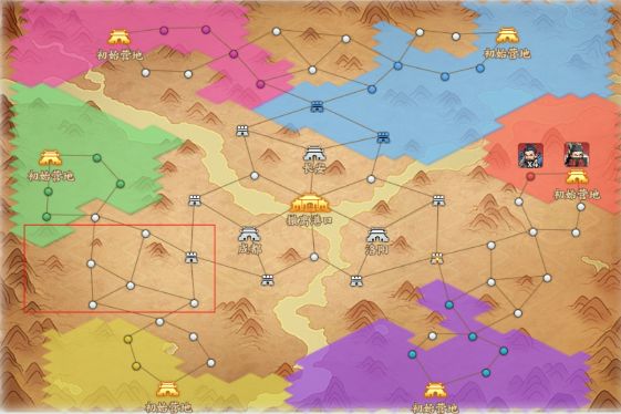 进入游戏后,6位主公分别降临在地图的边缘,从初始营地开启夺宝征途。