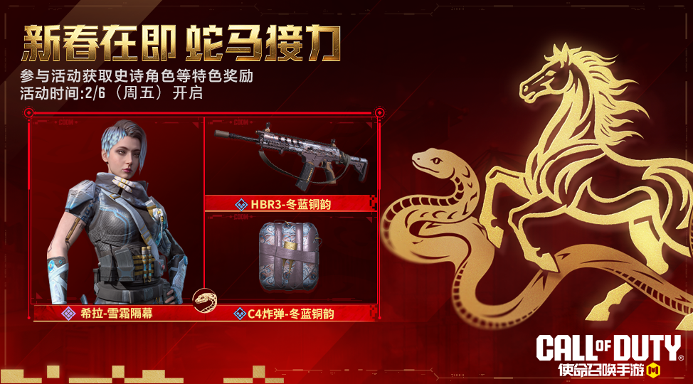 蛇年任务(2月6日起)与马年任务(2月17日起):完成每日任务获取印记,可解锁里程碑奖励——史诗级角色希拉-雪霜隔幕等好礼!