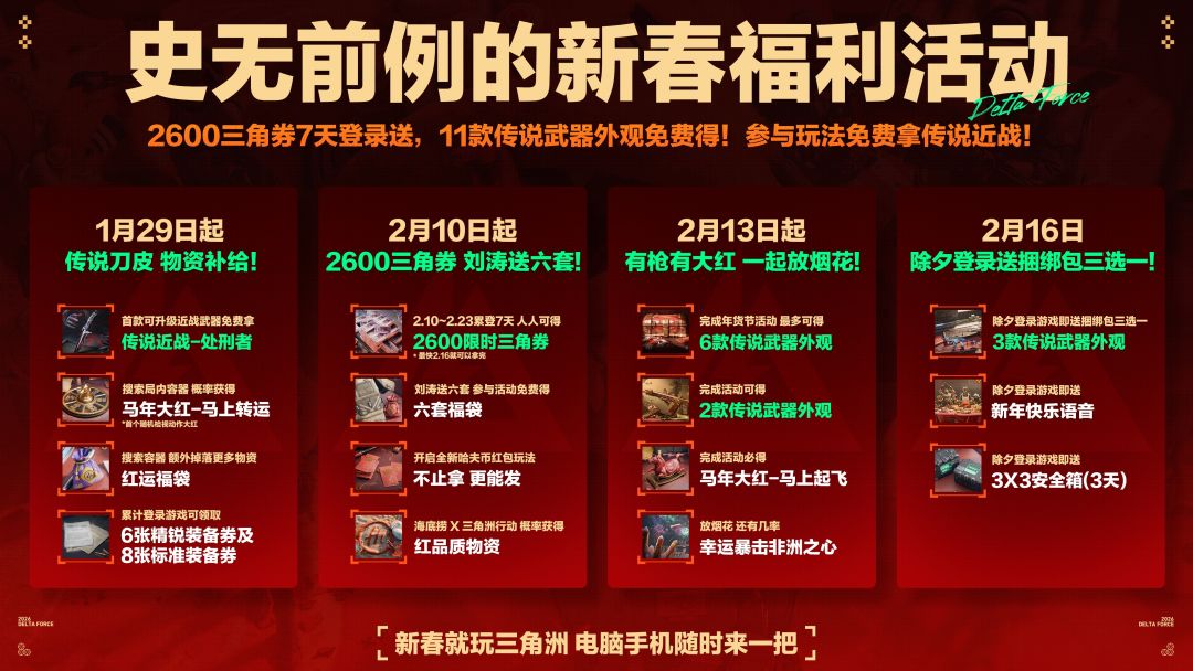 有券有枪有刀皮!更有刘涛送六套!《三角洲行动》新春福利速览!