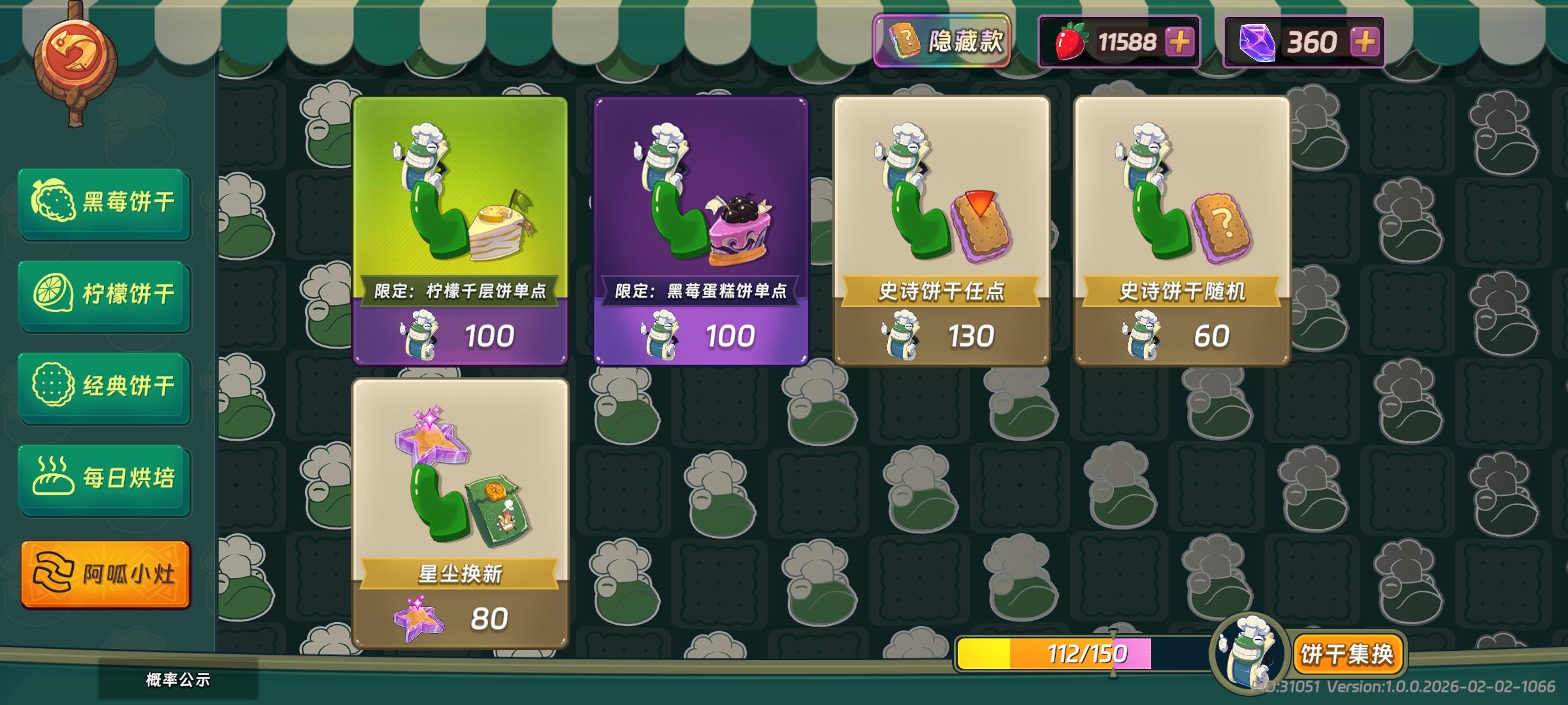 一共有12种史诗饼干黑莓丶柠檬丶紫薯,这三种优先级是最高的。