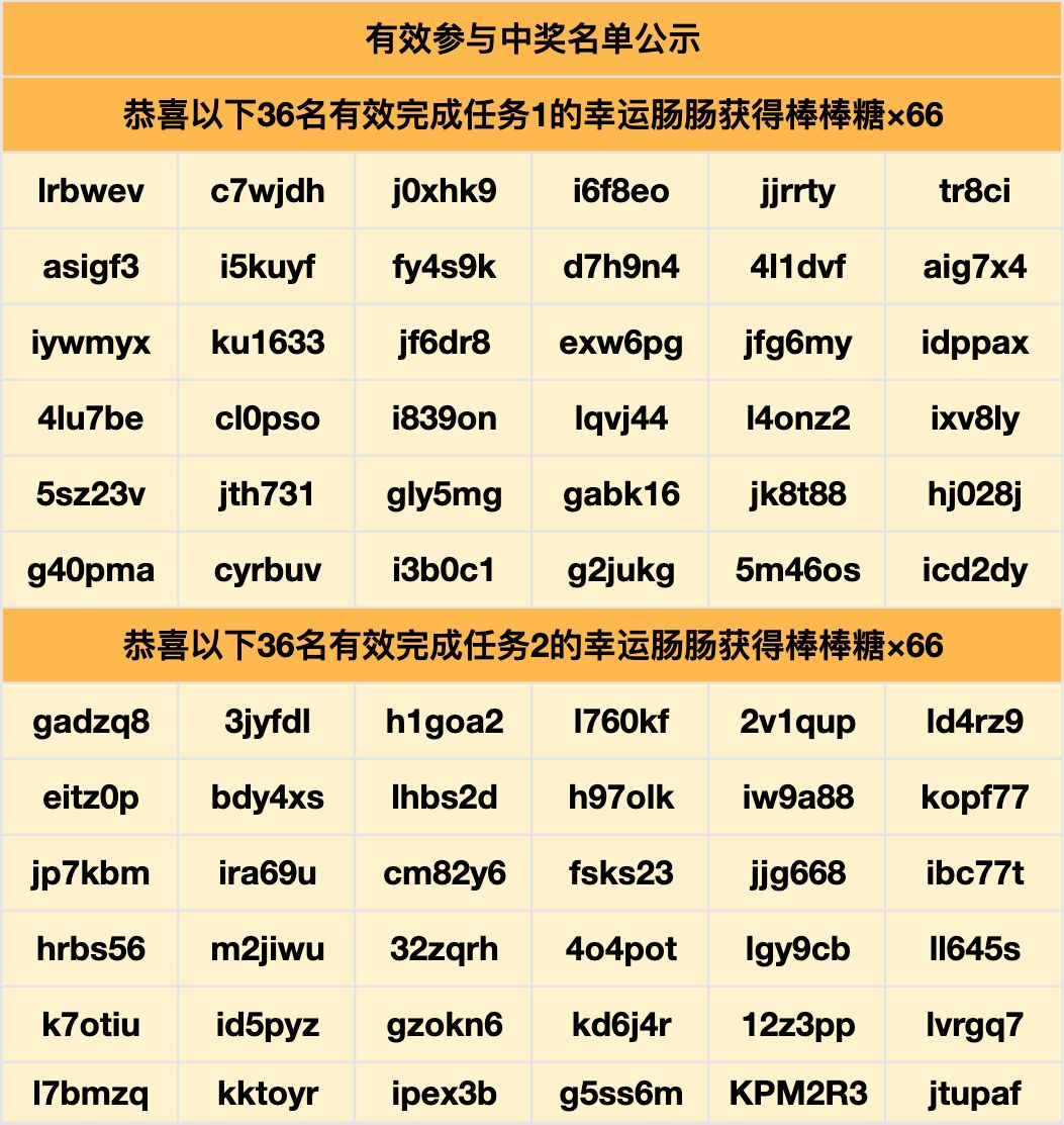 蛋卷将在每项正义收集任务中各抽取36名有效参与活动的肠肠获得【猫韵礼包】:棒棒糖×66!
