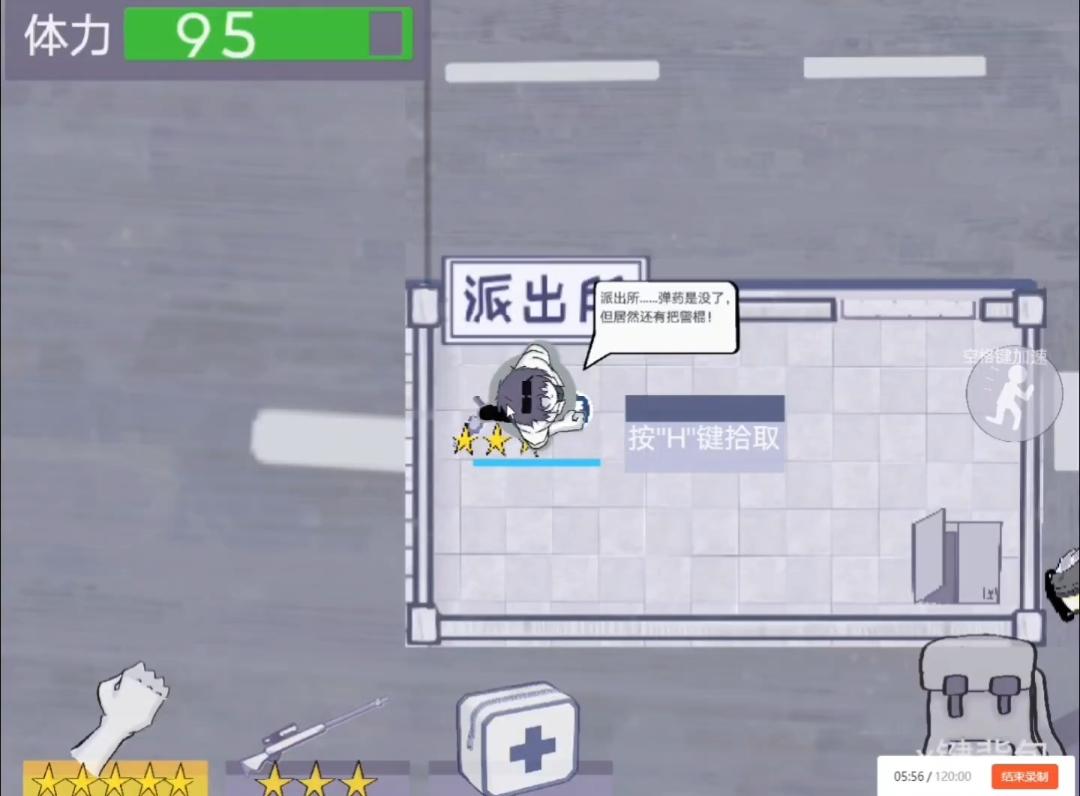 一边打怪一边前进,如果遇到派出所,可以在里面发现新武器警棍。