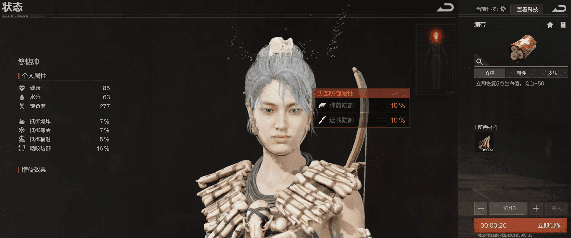 这样一套下来,咱们就有了像样的武器和装备,单刷过程中跌打损伤少不了,大家记得用布料多制作一些绷带,别等没血了才慌,提前备足,关键时刻能救一命!