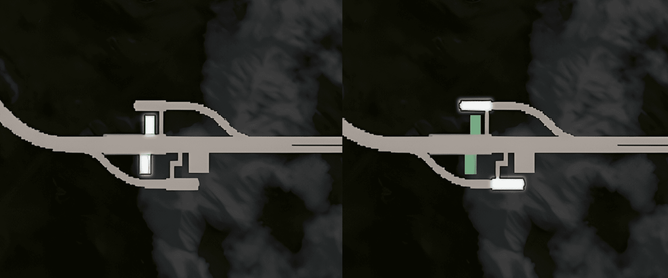有了它,探寻各个地铁口的具体位置就如同探囊取物一般轻松。 在这片地铁区域中,那两块格外显眼的绿色区域,便是地铁出入口所在之处。在地铁的上下区域,会有地铁火车静静停靠。