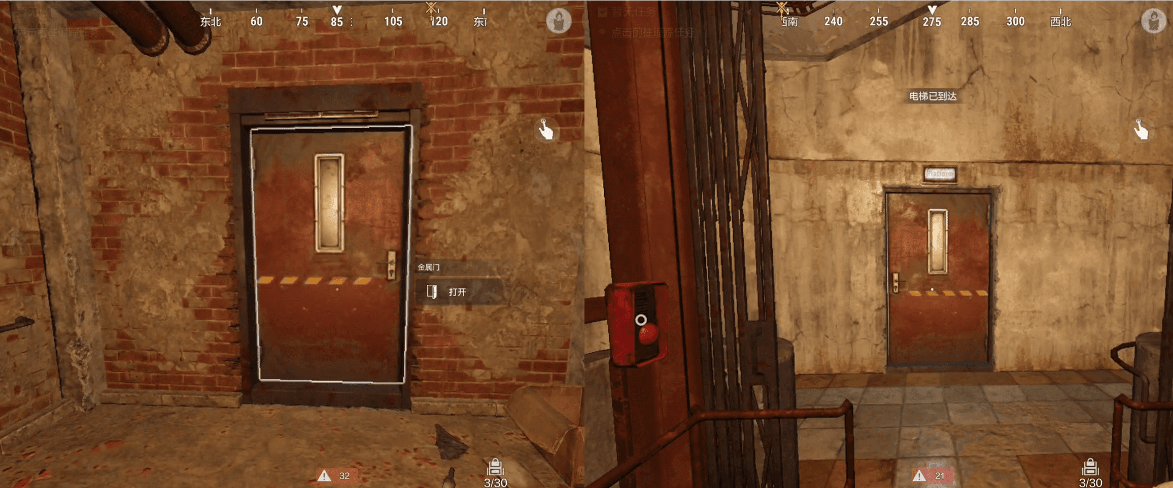 慢慢清完走道里的NPC,咱们继续往前走,走到走道尽头,还有一扇红铁门,打开之后再通过旁边的电梯井往下走,下来之后再打开一扇红铁门,就真正见到地下地铁啦!
