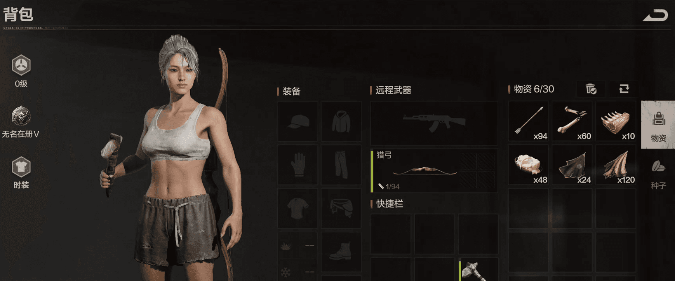 就不需要搞那些花里胡哨的,最简单的装备就够用!首先装备弓箭,咱们先去狩猎动物,击杀动物就能获取基础材料。
