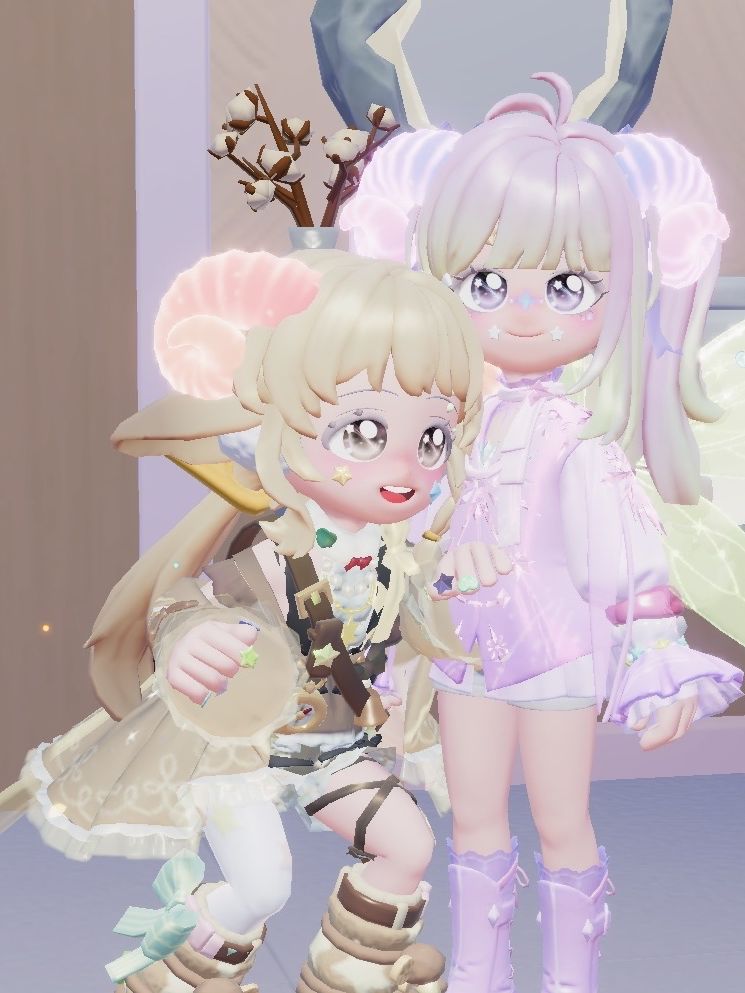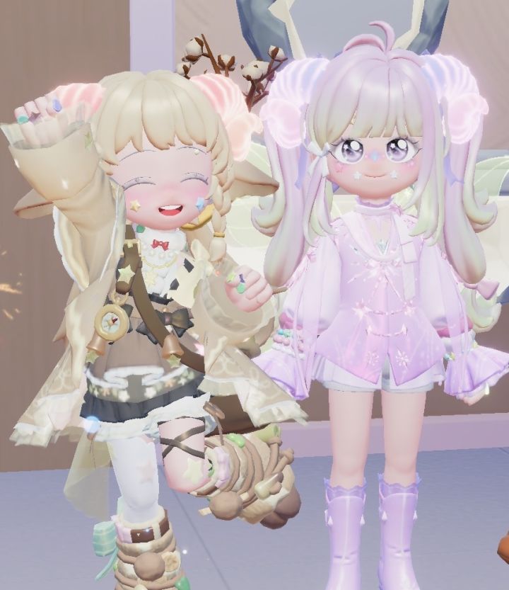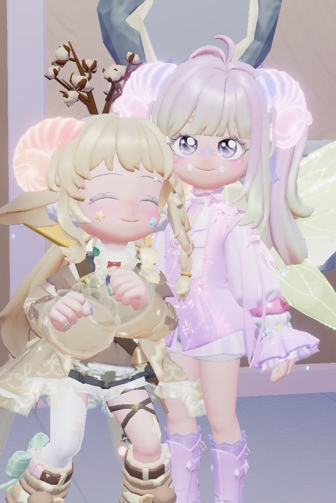 正好她在搭配衣服就和她一起研究,惊喜发现【密林小妖】女头搭配这次的【森铃咒语】意外的好看!简直是传说中的萌神