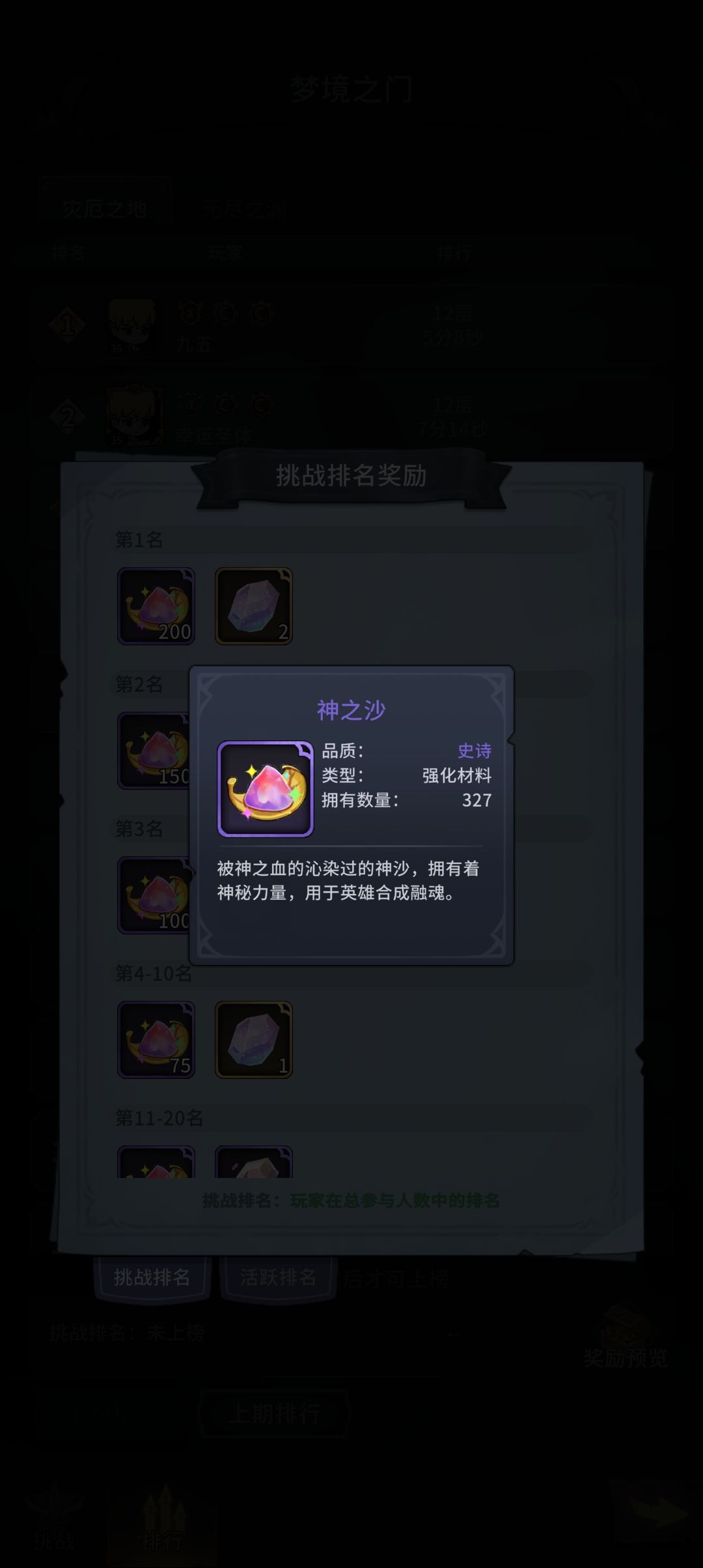 - 每周击杀BOSS活动排行奖励;神之砂:英雄融合至SS毕业的必需品,每次消耗50个(商城100钻/个)